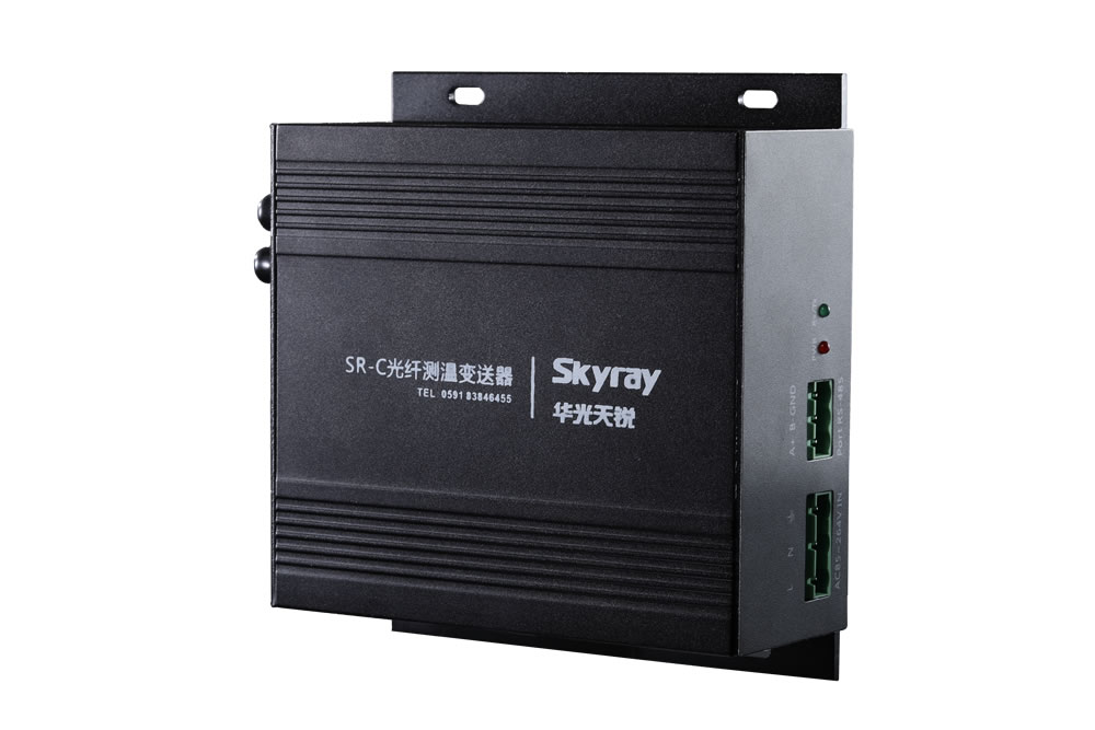光纖探頭由ST接頭、光纖光纜、末端感溫端三部分組成。ST接頭是與光電模塊的連接部分;光纖光纜為傳光部分,內部為石英光纖,石英光纖外部有涂覆層和包層,最外部為特氟龍保護套;末端感溫端含有感溫稀土材料,用于產生含有溫度信息的光信號;光纖整體耐200℃高溫,外表直徑為3mm。長期彎曲半徑13.2cm。短期彎曲半徑4.4cm。光纖引出線對地距離為0.4m的情況下,耐受工頻電壓100KV,持續時間5min。